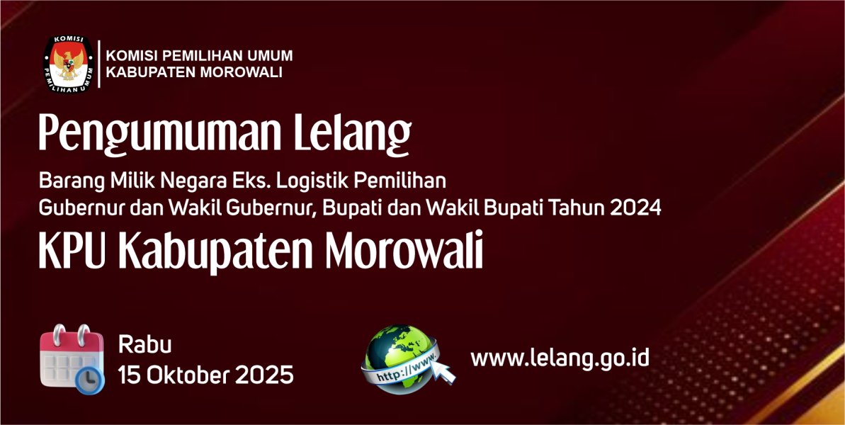Bungku, kab-morowali.kpu.go.id – Komisi Pemilihan Umum Kabupaten Morowali Melalui Perantara Kantor Pelayanan Kekayaan Negara dan Lelang (KPKNL) Palu, akan melaksanakan Lelang Penjualan Barang Persediaan Pasca Pemilihan Gubernur dan Wakil Gubernur, Bupati dan Wakil Bupati Morowali Tahun 2024.